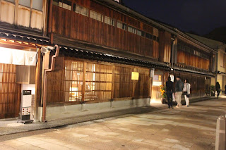 Sol advised us to visit the Higashi Chaya district in the evening, when the street lanterns gave this area a pleasantly welcoming atmosphere. This area is where the geishas would entertain in the teahouses. It dates from 1820, and outside Tokyo and Kyoto is the largest of these pleasure districts in Japan. It's been well preserved and is now a magnet for tourists, particularly those wanting an atmospheric crepuscular stroll.